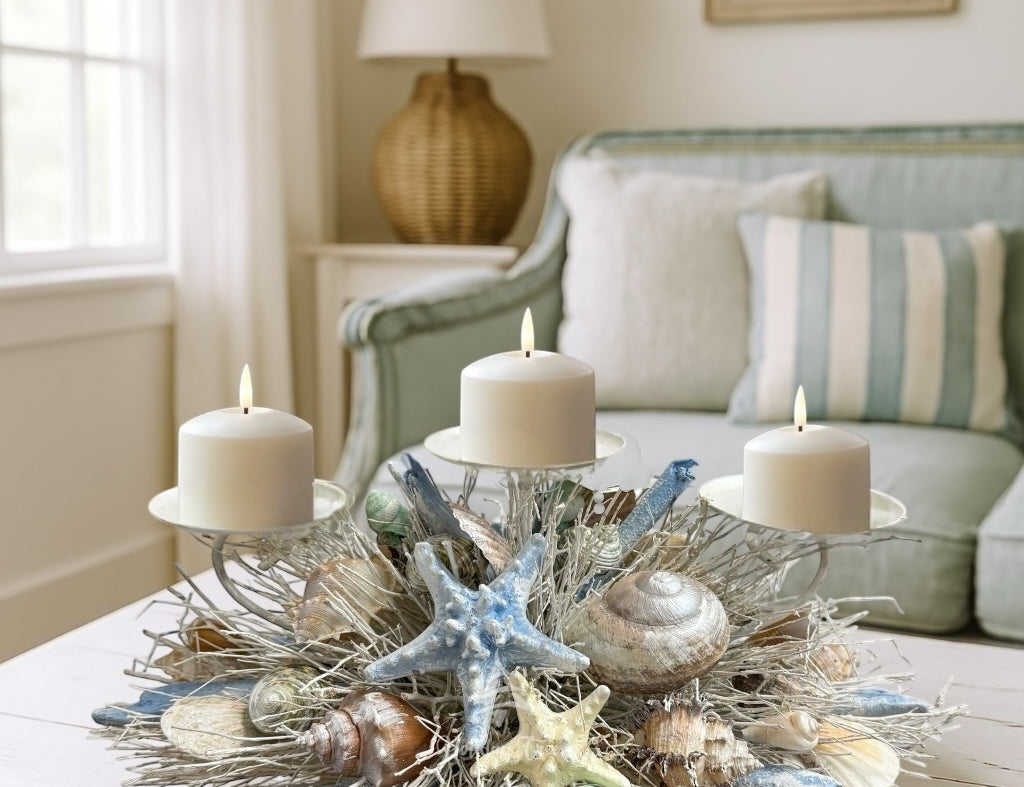 While our coastal Christmas decor is perfect for the holidays, many pieces are versatile enough for year-round display. Pieces like seashell frames and driftwood candle holders provide a timeless coastal charm that enhances any space.