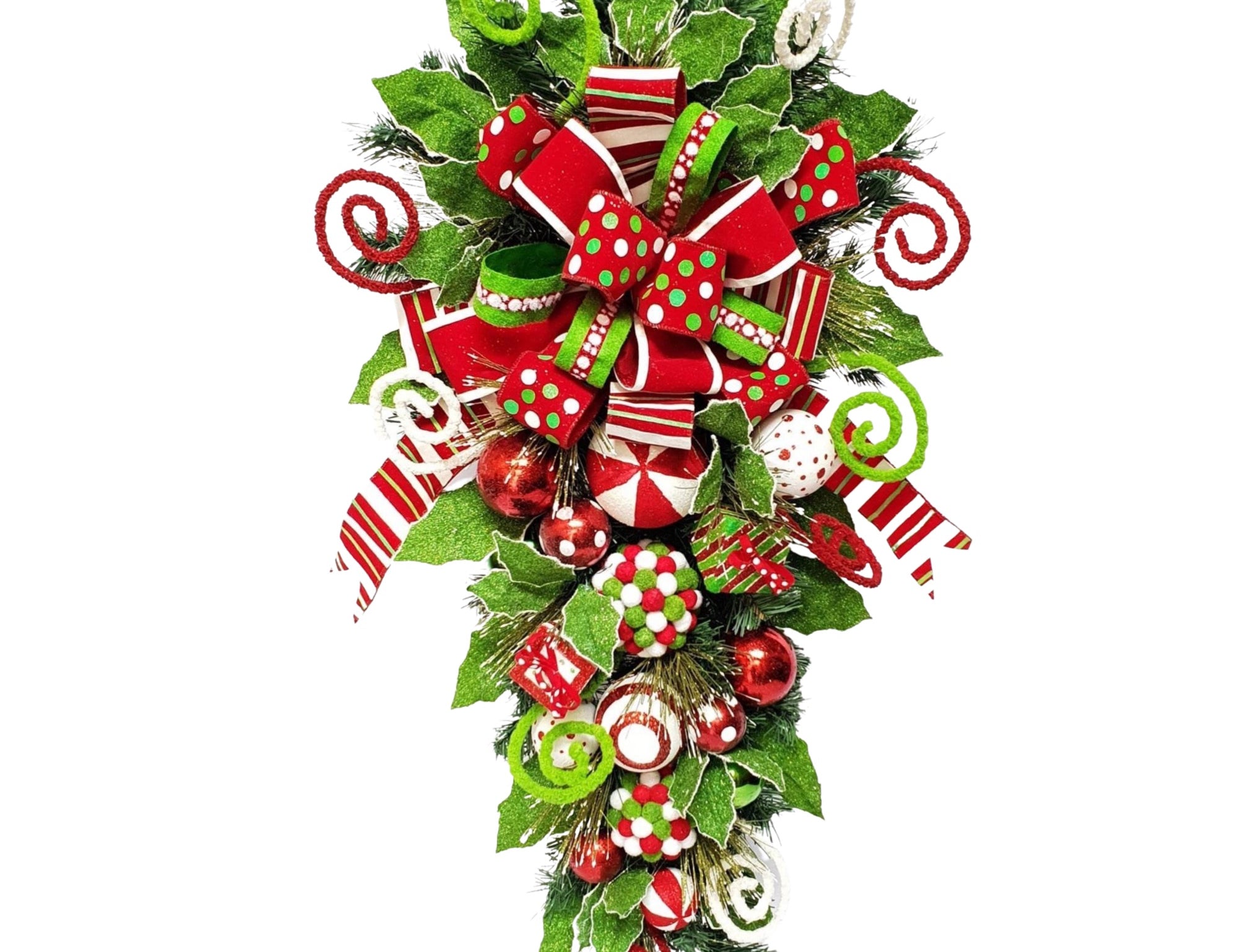 Our teardrop swags are easy to hang and arrange, making them a hassle-free addition to your holiday decor. From the traditional reds and greens to more modern color palettes, our Christmas teardrop swag collection is designed to blend seamlessly with your existing holiday theme.