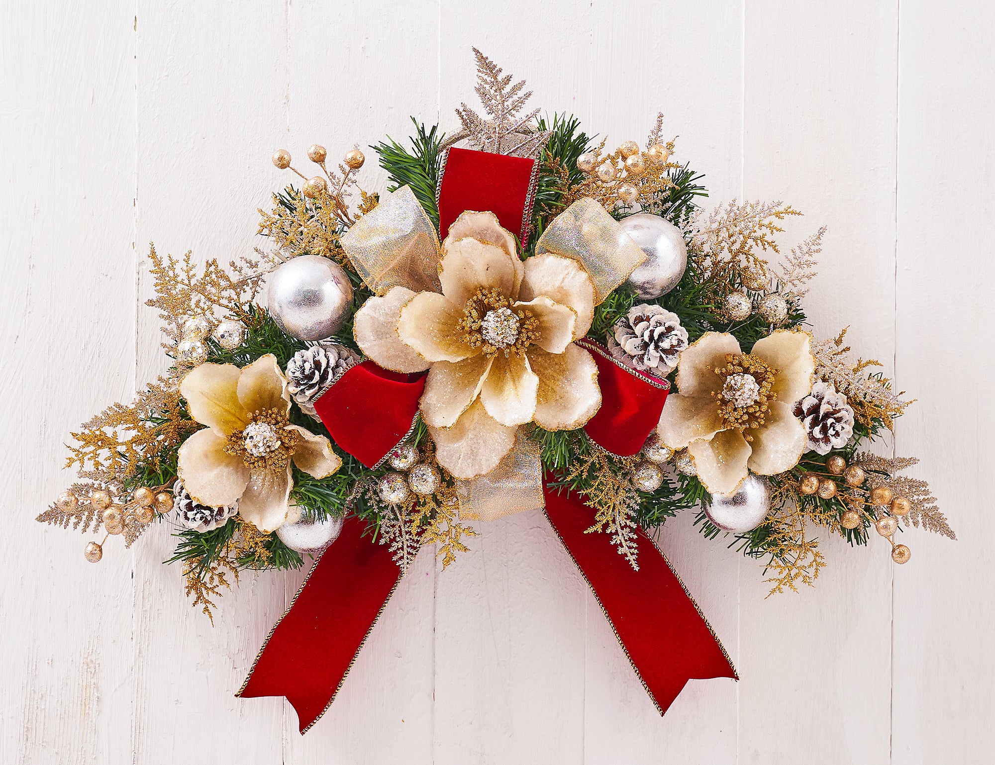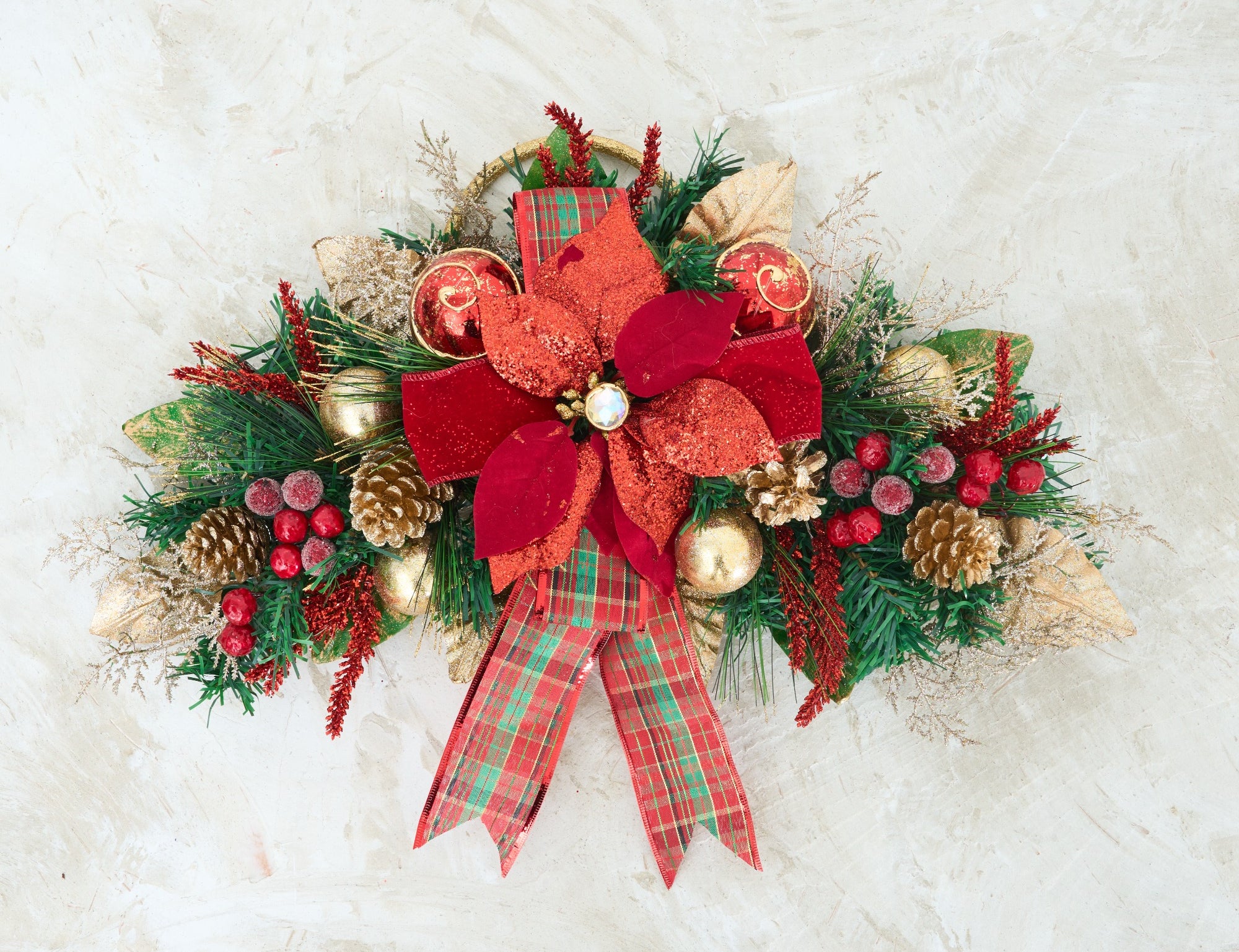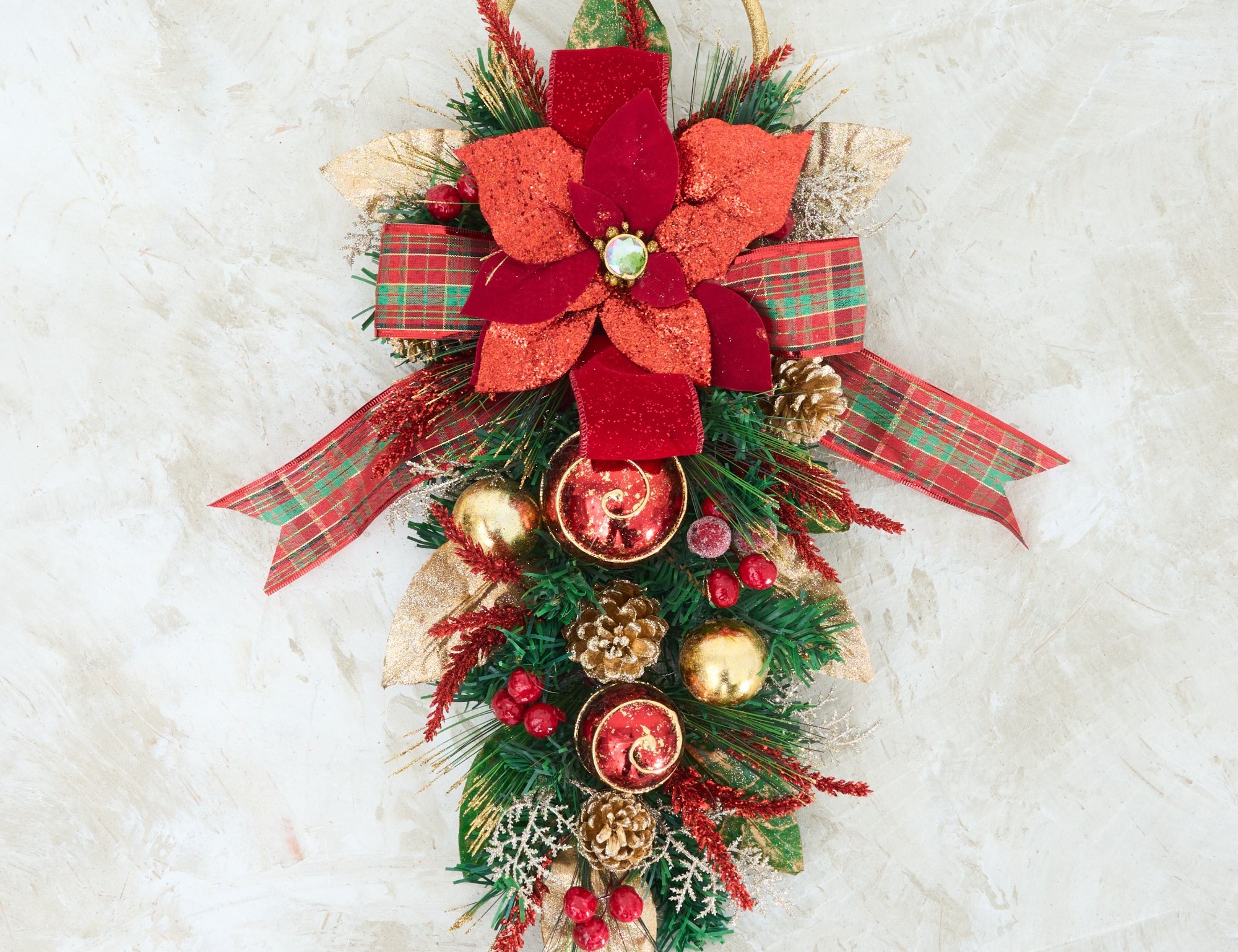 A teardrop swag is a versatile and elegant choice for holiday decoration. Whether you're looking for a classic Christmas teardrop swag to adorn your front door or seeking a unique teardrop Christmas swag to enhance your fireplace mantle, our collection offers an array of designs to suit every taste and decor style. Each teardrop swag is a masterpiece, featuring lush greenery, vibrant colors, and exquisite detailing that brings life to any space.